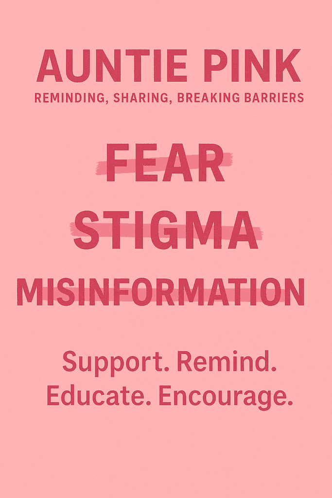 For years, breast cancer has been silenced by fear, stigma, and misinformation. Auntie Pink was created to change that — to speak boldly, educate compassionately, and guide every woman toward early detection and care.
